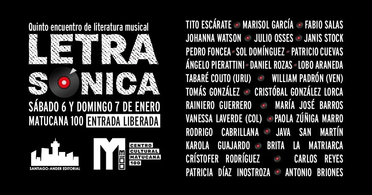 El evento durará dos días en Matucana 100. Habrán paneles en torno a libros históricos de música chilena, Víctor Jara, Pirincho Cárcamo, rap/hip-hop, novedades e invitades internacionales. Y todo gratis.